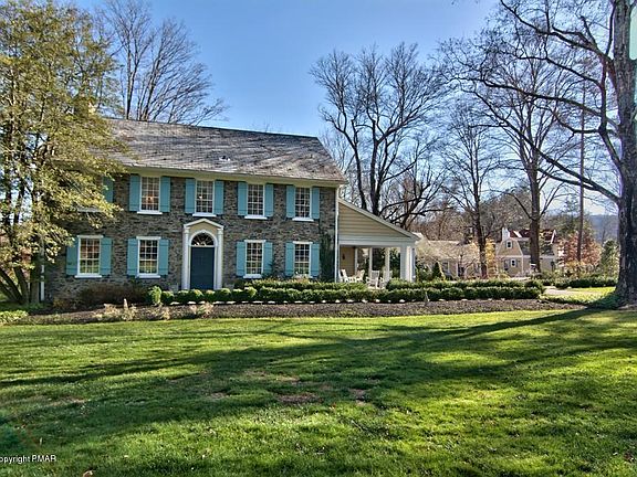 Sarah, a beautifully renovated and restored historic Stroudsburg stone homestead. Spacious eat-in kitchen with island, granite and stainless. Property includes a separately titled 0.36 acre lot with a two story barn with train room on second floor, and an orchard. Extra large pantry off of kitchen; washer/dryer also located there. Formal dining room with wood floors. Library with beautiful built-ins. Colossal living room with brick-faced fireplace. Four season sunroom with fireplace and view of gardens. A master suite also located on first floor, which can be den or office. Master suite on second floor with dressing room. Two well appointed guest rooms on level two. Fully finished third floor with bedroom, living area, full bath and cedar closet. Central water, sewer & gas. Central air.