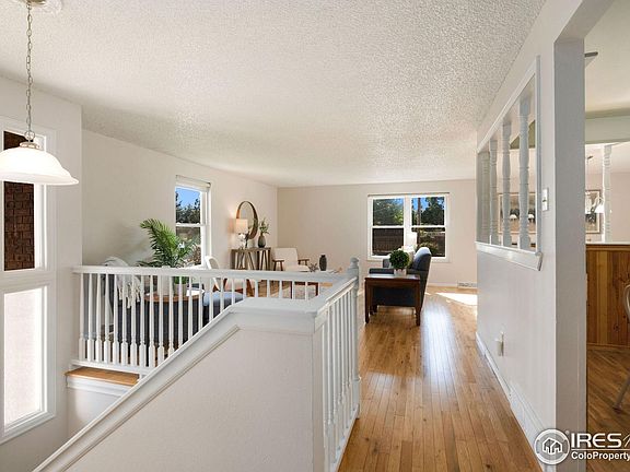 Welcome to this large and lovely bi-level home with updates throughout! Nestled in Loveland's McKee Meadows neighborhood on a corner lot with mature trees and landscaping you will be a short walk away from the neighborhood park. The modern interior shows off the gleaming hard wood floors! The open floor plan welcomes you to gracious living and entertaining between the living/dining rooms, kitchen, and private balcony. The gathering point will be the chef's kitchen featuring a gas range, built in microwave, and eat in area. The dining room is roomy enough to expand for larger gatherings. The upper level features a generous primary bedroom with walk in closet and ensuite bathroom with walk in shower. The other two large bedrooms on this floor share a full, updated bathroom with two sinks, and two storage closets. The lower level has a second living area with an electric fireplace, a fourth roomy bedroom, storage/mechanical room, 3/4 guest bath, and even more storage. There is a driveway level private entrance and access to the oversized garage. Surprise! Your new home has more in store for you! A unique room outside the garage entrance was once a hot tub room that could be a hot tub haven again, or perhaps a sauna, home studio, art studio, or any other bonus room your heart desires. There is also a large, enclosed storage area under the balcony. The home features RV/boat parking, sprinkler system, AC, and no HOA or Metro District! Enjoy being just moments away from all amenities including downtown dining, schools, parks, shopping, and quick commutes to I25 or Ft. Collins. Details that will make you fall in LOVE: gleaming hardwood floors, gourmet kitchen, no HOA, so much storage! This home is bathed in natural light - it's a dream come true.
