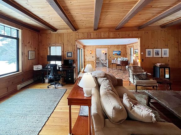 A rare find in the Edson Hill neighborhood, this stately two-story colonial home offers the convenience of location, privacy, established landscaping and a swimming pond. The residence has only had two owners and recently went through a renovation, including all new windows throughout. The great room has a fireplace, views and direct access to the hand laid stone patio. A staircase descends to a room with a pool table for a game of billiards. Entering the house from the front door, the grand entrance offers access to a large living room with a fireplace. This is the perfect home for accommodating guests and entertaining. A dining room off the kitchen offers formal entertaining, or for everyday dining, all keeping warm by a new wood stove. An eat-in kitchen looks out to the view of the yard and pond. A large awning offers a place to dine protected from the sun. The second level features a newly renovated primary suite and two additional bedrooms. Perhaps you want to have a private space for guests, an office or apartment. From outside entrances, the 3-car garage and the main house, easily access a spacious one-bedroom apartment with living/dining/kitchen in one large room with a balcony to enjoy the evening sunsets. Whatever your pleasures may be, you can indulge them from this location. Cross country/mountain biking trails, close to the village and ski areas, dinner at Edson Hill inn...the Vermont experience you seek can’t be beat from this location and this unique home.