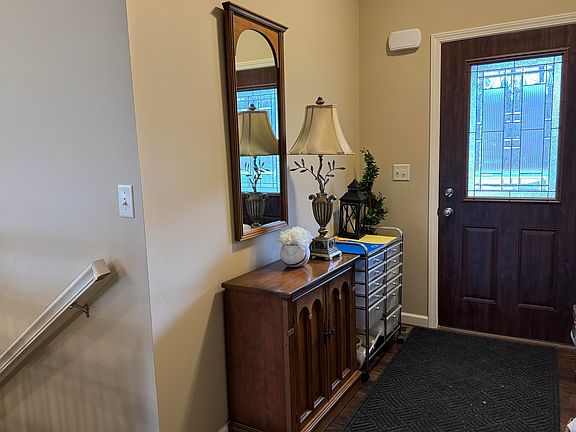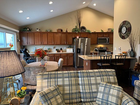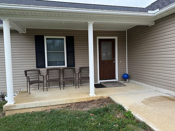 Built in 2019...Check out this 3 Bedroom, 2 bath ranch style home with an open floor plan, a full basement (partially finished) and a 2 car attached garage. The large open kitchen/dining/living room features a vaulted ceiling and sliding glass door to the patio for a view of the field. (No back yard neighbors). The electric range, refrigerator, B/In microwave and dishwasher, and the washer and dryer will be included in the sale. The main bedroom suite features a walk-in closet, a handicap accessible step-in shower, and double bowl vanity. The basement has a large storage room and 340 Sq ft of finished living space (the family room) with egress window just in case you need an extra bedroom. There is plumbing roughed in for a bathroom in the basement per the previous listing. The concrete drive with additional parking/turn around is a nice perk as well. The contents of the home will be removed mid January to be auctioned. Please allow time to remove for possession. Taxes are currently based on a homestead reduction of $181 per half
