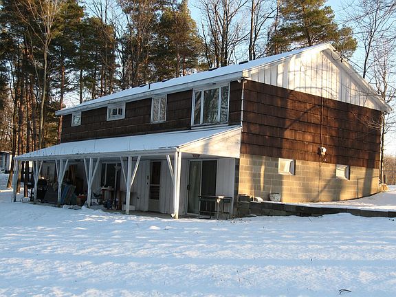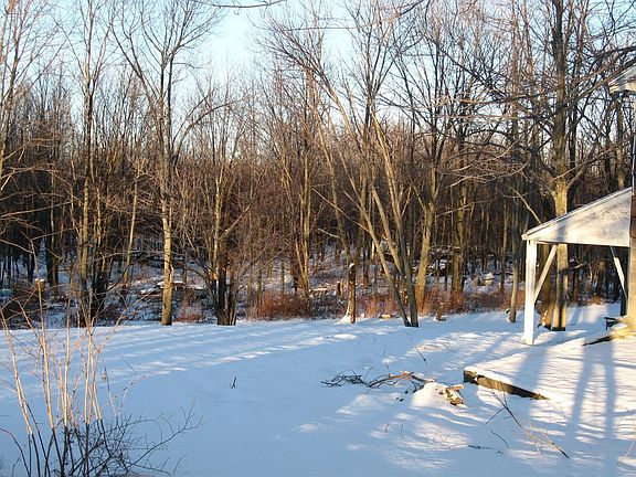 The setting is simply gorgeous & with a view! Home is nestled in a beautiful treed setting w/ woods as the backdrop. This hillside ranch offers a full finished walk out bsmt to a large covered patio to sit & take in the beauty of nature. Finished bsmt would also make a great in-law suite w/2 bdrms., full bath, living area, laundry w/ a room that could easily become a kitchen w/sliding glass doors to back patio. Fresh paint & carpeting throughout the upstairs w/large country kitchen, oversized living room, 3 bdrm & full bath. Large bright windows let in natural light. Newer roof & hot water tank. Detached 2+ car garage ready for your toys or workshop. You are going to fall in love with the beautiful setting. Sq ft listed does not include finished bsmt area. Call today for an appt!