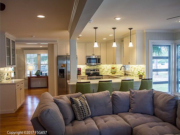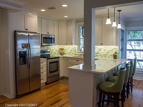Charming home located in the small picturesque City of Port St Joe. This home will welcome you from the minute you step inside with the open floor plan, original hardwood flooring, brick fireplaces and lots of natural lighting from all the windows. Features include remodeled family room and kitchen in 2016. Kitchen boasts quartz counter tops, recessed lighting, and stainless appliances. The home has beautiful tongue and groove walls and ceilings with crown molding throughout. Master bedroom and bath added in 2016. Master bath has a tile shower, double vanity and walk-in closet. The other two bedrooms have been freshly repainted, one with new carpet and the other with restored hardwood flooring. The.60 acre property offers a 4 car garage and extra parking. This home is a must see!