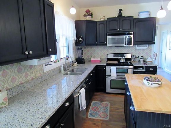 This well maintained contemporary 4 bedroom 2 ½ bath home is in the heart of the Finger Lakes on a peninsula on the Erie Canal located within 40 minutes to Syracuse & about 1 hour drive to Rochester is a prefect nature's Retreat. With a large kitchen with new granite countertops & top of the line oven/stove and large family room combo it's a perfect for gatherings and entertaining. Living room wrapped in windows featuring a wood burning fireplace. Large master bedroom has a great view of the water & features a jacuzzi tub in the master bath. Enjoy the large patio with a firepit. "A MUST SEE"