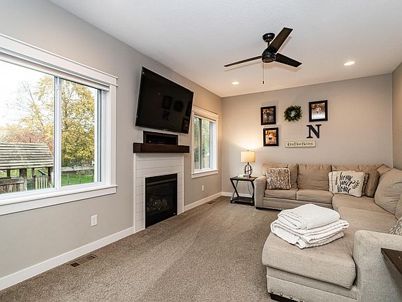 Located in the popular Jacobson Park subdivision in Story City, this charming 2-story home boasts 5 bedrooms, 3.5 baths and extra large garage (with floor drainage and heater), and a finished lower level. Built in 2019. Enjoy spending time outside on the cozy front porch or on the oversized back patio; and the convenience of the backyard storage shed. The main floor boasts a spacious office with double doors, 1/2 bath, spacious kitchen with center island and corner pantry, dining and large living room with gas fireplace. Take note of the beautiful two story staircase! Upstairs are 4 bedrooms. The primary suite is extra large with ensuite 3/4 bath, shower and walk-in closet. Three additional bedrooms share a full bath off the hallway. The lower level adds additional entertainment and lounging space with a full bar, family room, 5th bedroom and additional 3/4 bath.