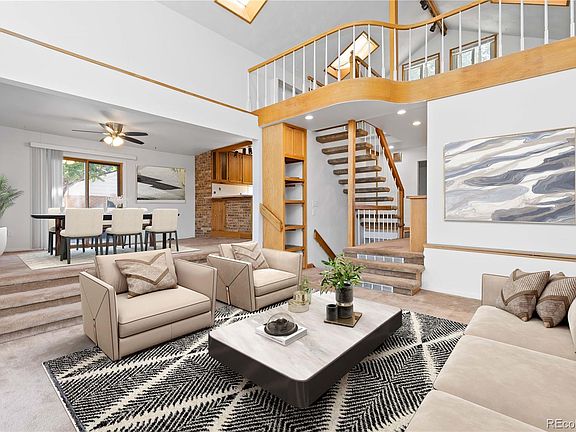 The main level includes two sunny bedrooms and a full bath, while upstairs you’ll find a versatile loft that overlooks the family room. With its vaulted ceilings, skylights, and built-in shelving, the loft can easily function as a home office, library, studio, or additional lounge space.