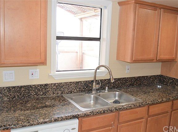 Upstairs unit. Largest floorplan in complex. Shows very well. Granite counter tops. Tiled kitchen and bathrooms. Wood veneer flooring throughout. Vaulted living room ceilings. Large patio. Upgraded cabinets. Single car garage beneath unit. Close to UCR and downtown.