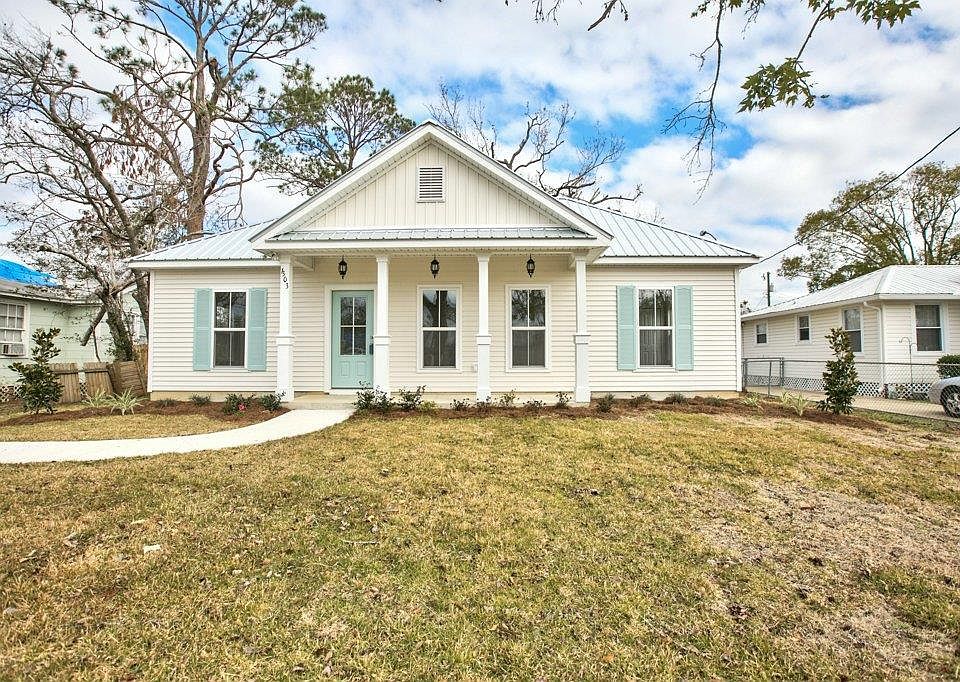 Move in Ready - - Sustained NO DAMAGES from Michael. HIGH and DRY with no flooding. New construction. This Adorable, Florida Cottage is packed with a punch ---> Great curb appeal, 2 Bedrooms + 2 Full Bathrooms, Metal Roof, 9' ceilings, spray foam attic insulation, a beautiful kitchen with GE Stainless Steel Appliances, classic yet modern-day tile back splash, granite counter tops and white shaker style cabinets. Easy care LVT flooring in the great room, kitchen and baths, neutral carpet in the bedrooms. The bathrooms are charming and cleanly designed with white cabinets and quartz counter tops. Access from the kitchen offers a large screened in back porch with lock out storage room. Be sure to check out the virtual tour .Agent is related to seller
