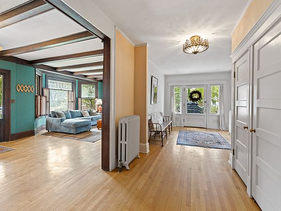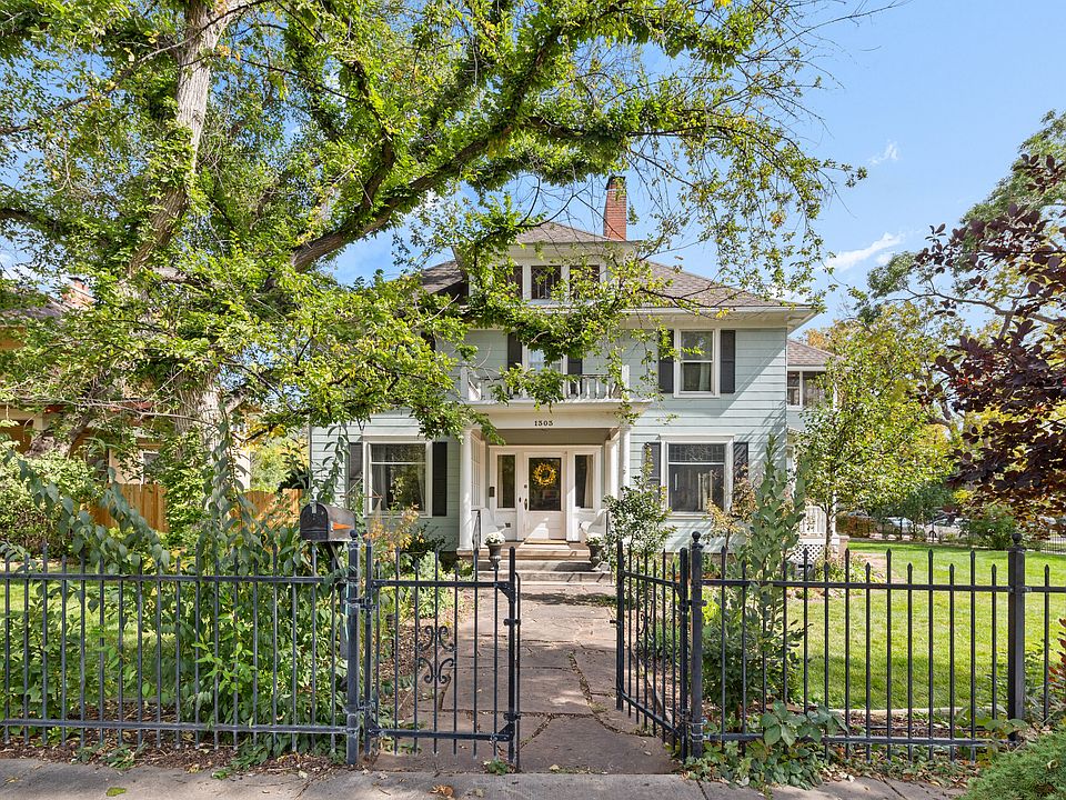 Gorgeous Old North End Foursquare of remarkable quality and craftsmanship. As you enter the home, you'll appreciate the covered porch with additional built-in seating. The wide foyer opens into a light-filled south-facing living room with signature wood beamed ceilings, hardwood wainscot, and a cozy gas fireplace. From the large living room, you'll be greeted by a second large restored porch to take in the yard. The main level also includes a large office with built-in bookcases, a second family room (or dining room) with a Dutch Door, a spacious kitchen with gas range and more wood beams, a powder room and laundry room. A gracious staircase leads you up to 4 second-floor bedrooms all featuring wood floors and walk-in closets. The sun porch architecture continues on the second level with two additional sun porches. The primary bedroom has an attached bathroom with a claw-foot tub. The finished third-floor offers a typical 100-year old non-conforming bedroom or flex space with closets and storage. Large windows with original molding throughout the home feature intricate cut glass accents. Outdoors, a tall wrought iron fence surrounds the enchanting lot with beautiful mature trees, a lush lawn and garden, and a recently installed privacy fence. This storybook lot has the added benefit of a historic irrigation well for outdoor watering. Situated on one of the best streets in the Old North End, North Tejon has many of the city's architecturally significant and attractive homes and less through-traffic than several other area streets because it's bordered by Colorado College on the south and Penrose Hospital to the north. There's no place like home to enjoy the upcoming seasonal holidays. Surround yourself by the mature trees, stroll the sidewalks, appreciate the uniquely crafted residences and make the sense of community found in the Old North End yours, all while remaining close to the amenities of downtown living!