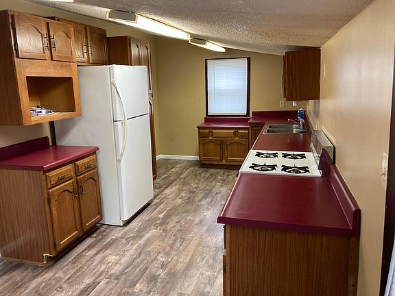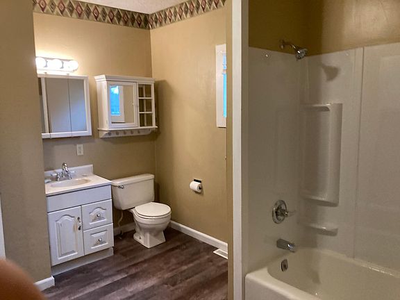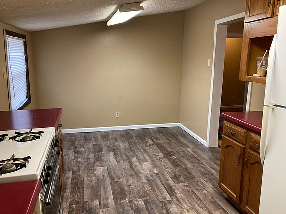 Updated flooring throughout entire house. Matching vinyl plank flooring in LR, kitchen, hallway and bath. Almost new carpet in bedrooms. Ceiling fan in LR and master bedroom. New tub surround, plumbing and Moen faucet setup. - Central air with central gas furnace - Covered front porch, great for sitting and watching the weather. - Motion detector lights on front and back of house and on garage. - Full chain link fence around entire yard, including front. Very large single car detached garage. - Kitchen has tons of storage with nice refrigerator and gas stove. Room for table in kitchen. - Washer/dryer hookup in bathroom. 3 prong dryer outlet. - Stand up cellar for storm protection. - No house to north and no houses across the street/empty lot. - Have added extra insulation in attic and have added any insulation that is missing as I finished exterior siding. All utilities and lawncare are responsibility of tenant. Immediate month-to-month lease agreement. No cats but other pets will be discussed on a case by case basis with rent increase. No dogs that my insurance company or I are uncomfortable with. No smoking. Any smoke smell in the property upon vacating will cause a significant loss or possibly no return of deposit. Street parking or parking in single car detached garage. If tenant does not stay in property for a full year then re-keying or lock changing fees will apply.