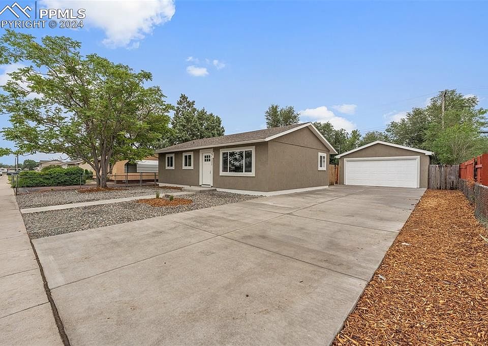 Step into this beautifully remodeled 3-bedroom, 1-bath home with additional living space, designed for modern comfort and style. Every inch has been carefully upgraded, featuring fully remodeled kitchen and bathroom, new roof, new windows, new drywall and fresh paint, sleek new flooring, new concrete driveway and new fixtures throughout! The oversized detached 2-car garage and long extended driveway provides ample room for parking and storage. Situated in a prime location just minutes from I-25 corridor, Fort Carson, Cheyenne Mountain, and the Broadmoor, this home offers both convenience and charm. Don't miss the opportunity to own this impeccably renovated property!