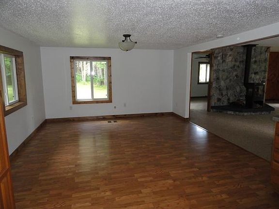 OLD HWY 51 SOUTH HOME. Just minutes from town, completely renovated and updated home sits on 1 1/2 acre wooded and level site with a large open yard area, firepit and beautiful shade trees, located very near recreational opportunity and trails just down the road. 2 bedroom 1 bath mobile home has been completely remodeled with a large stick built addition containing a 3rd bedroom and huge open living area. Lots of natural light comes through the two walls of windows and patio doors lead to the south facing deck. Stone feature wall in the living room is the backdrop for a freestanding gas log stove providing cozy warmth on cold winter days. Homes is very energy efficient with the installation of new windows, insulation in walls, vapor wrapped and sided. Interior has all new wiring, drywall, furnace and water heater. Natural gas is to the home. Owner has placed a new roof down to the sheeting on the detached garage. Zoning is all purpose opening up the possibilities!