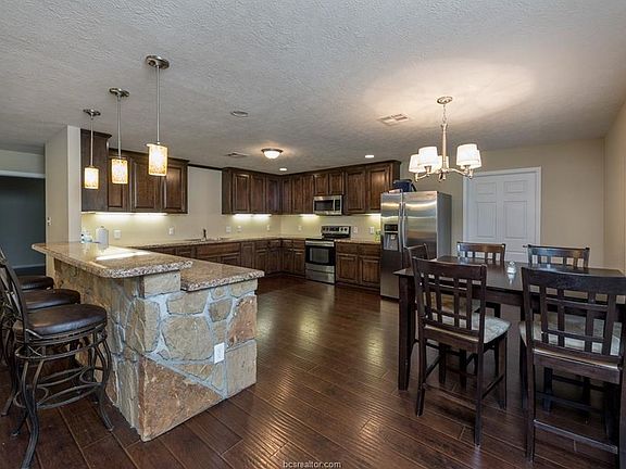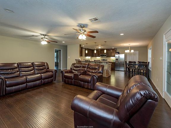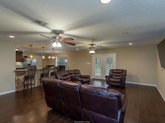 RARE FIND, HOUSE ON SMALL ACREAGE OUTSIDE OF CITY, ATTRACTIVE 4 OR 5 BEDROOM BARNDOMINUM STYLE HOME FEATURES BEAUTIFUL LAMINATE FLOORS, GRANITE COUNTERTOPS AND SAMSUN STAINLESS STEEL APPLIANCES , LOTS OF STORAGE , FRONT AND BACK PORCHES, HAS LARGE SCATTERED TREES AROUND HOUSE AND SIDE. FURTHER BACK MORE HEAVILY WOOD WITH SEASONAL CREEK RUNING THROUGH.PARTIALLY FENCED, HAS LOVELY LARGE KITCHEN THAT OPENS TO DINING AREA AND FAMLY ROOM, LAUNDRY ROOM HAS GREAT STORAGE. HOUSE IS MOVE IN READY. LOVELY LOT. LOCATION IS CLOSE TO NAVASOTA AND COLLEGE STATION. ELECTRIC BILLS VERY LOW. HOUSE IS DOUBLE INSULATED. OWNER SAYS LOWEST BILL $170. WATER IS $30 MONTH. THERE IS A WELL ON PROPERTY.