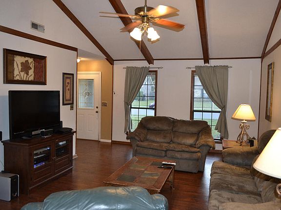 Open floor plan with nice flow. Family Room has vaulted and beamed ceiling with beautiful handscraped flooring. Tile floors and and efficiency toilets about 2 years old. Lots of reinforced storage space above garage with pull down stairs. Large fenced backyard with patio and 12' x 24' storage shed.