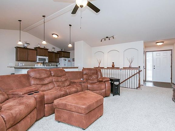 Open Floor Plan With Vaulted Ceilings In Great Room And Kitchen Areas. Great Room Features Corner Gas Fireplace. Granite Kitchen Counters, Breakfast Bar And Dining Area With Sliders Leading To The Newly Added 3 Seasons Room. Deck With Stairs Leading To Your Fenced In Backyard. Rustic Finished Lower Level Rec Room With Build In Bookcase, Bar Area, And Barn Door Leading To Shop/Storage Area.