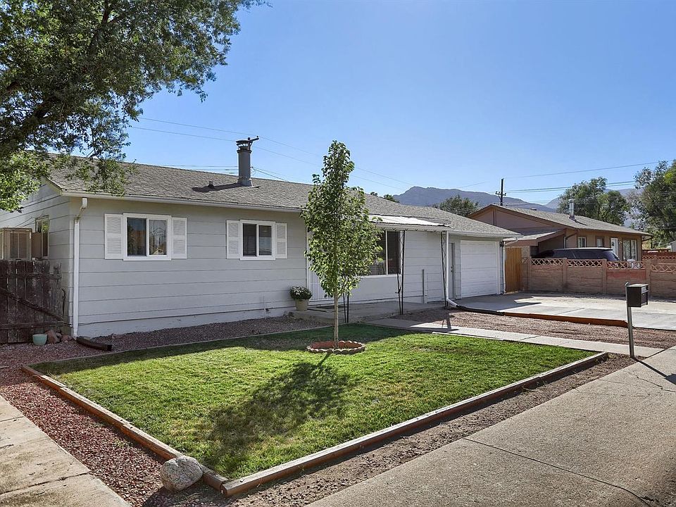 ADORABLE & AFFORDABLE! Fresh exterior paint in dove-gray w/crisp white trim sets this home apart from the neighbors! Many upgrades will be found in this conveniently located bungalow in SW Colorado Springs. Auto sprinkler, wood stove in living room, ceiling fans, new carpet throughout in past year. Eat-in kitchen has newer cabinets, solid laminate countertops, warm oak flooring, pantry, and lots of light. Kitchen backdoor has security screen walk-out to covered patio and a privacy-fenced backyard w/separate area for dogs. Laundry room has access to garage. Parking for at least 3 vehicles AND a 1 car oversized garage w/workshop shelves. Views of Pikes Peak from your driveway or backyard can be enjoyed. Gate to alley access at rear. Conveniently located near Meadows Park Community Center & Quail Lake, city transportation one block away, easy access to I-25, shopping, theaters, and restaurants, and Ft. Carson. NO HOA or covenants to put up with. GREAT STARTER OR INVESTMENT HOME!