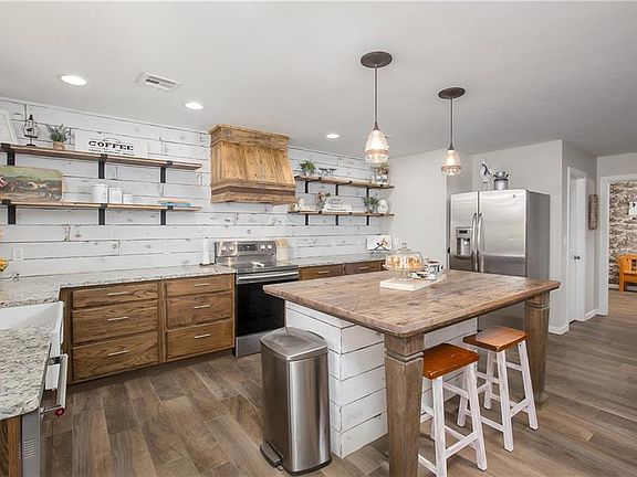 Get Ready *** Get Set *** PACK !!! and don't forget your horses ... 5 ACRES fenced & cross fenced ... Bring your fishing pole too - the pond has fishes ... This 3 BR home has been totally remodeled and is move in ready ... Office/2nd LR ... Two car attached garage ... In-ground STORM SHELTER ... No carpeting - home features 3 ft wood look ceramic tile flooring (except bath) ... 50 amp RV hook up ... Barn w/ water & electric ... Open farm house designer inspired kitchen, dining & family room ... Masonry fireplace ... For the car collector, mechanic, carpenter or grower of "herbs" there is a 30x70x12 engineered all steel building w/ radiant barrier fiberglass insulation ... 30x50 is enclosed and 30x20 is a carport w/capability to enclose ... Carport area has a center drain ... 125 amp below ground electrical service ... 4 ft LED shop lights ... Two commercial insulated heavy gauge garage doors - 10x10 and 10x20 w/ 2 commercial WIFI capable overhead door openers ... Also a 10x20 building ... Call for list of improvements.