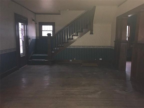 Small town living! Spacious 1 1/2 story home with 4 bedrooms and 1.5 baths. Features original woodwork, hardwood floors, formal dining room, fireplace and open stairway. Full basement is partially finished. Large open porch. 2 car detached plus 1 car detached. Ready for your finishing touches.