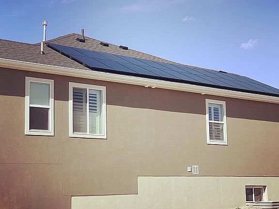 Recently added solar panels system with reverse metering. Upstairs windows have Sunburst Shutters. Custom cabinets in kitchen, office and laundry.