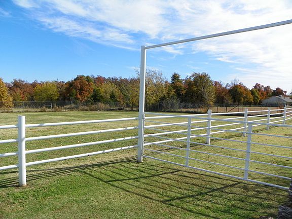 Hobby farm w/animals! Nice 4 BR brick on lovely 2.5 acres. Newer stainless appliances (fridge negotiable), large dining area. Spacious laundry room w/good storage, 2 living areas including formal LR w/fireplace & huge family room w/built-in office space. Fenced back yard has garden spot & cellar, 40x40 shop/garage w/extra tall O/H door & 1-stall barn. White pipe fencing sets off this beauty!