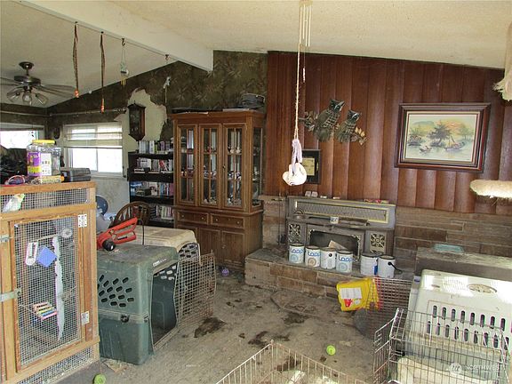 Great Location, Great Lot! Not so great home. But this diamond in the (very) rough is in need of someone to fix it up. Upstairs features 3 bedrooms, living room with fireplace & insert, dining room and kitchen. Downstairs is another fireplace and big family room, library room, 2nd bathroom, and other storage rooms too. Outside is a large upper deck overlooking the back yard with a patio below it, a covered RV port, garden shed, and landscaping that needs to be returned to its former glory but has been good for the owners many dogs, cats, rabbits, guinea-pigs, and ducks. So, this one's not for the faint of heart but has potential.