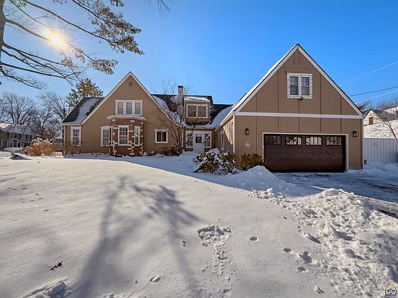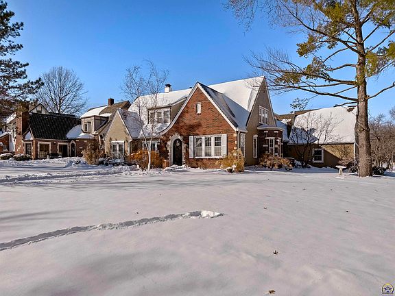 Nestled in the heart of Topeka's coveted Westboro neighborhood, this stunning English Tudor home exudes timeless elegance and classic charm. This meticulously maintained residence blends vintage architectural details with modern updates. As you approach the property, the home's distinctive exterior, steeply pitched roof, and brick accents immediately capture your attention. A spacious front yard with irrigation, mature trees, new sod in 2022 and manicured landscaping enhances its curb appeal, providing a serene and welcoming atmosphere. Inside, the home boasts an inviting blend of old-world character and modern comforts. The grand foyer features rich hardwood floors, leading to a light-filled living room with a striking gas log fireplace new in 2022, perfect for cozy evenings. The updated kitchen offers modern convenience with high-end appliances, custom cabinetry, and a breakfast nook. A spacious family room provides additional living space for relaxation or entertainment. Upstairs, the master suite is a tranquil retreat with ample closet space and an en-suite bath. Two additional bedrooms, each with its own character, share a well-appointed full bathroom. The backyard is a peaceful oasis with a new patio in 2022 and an in-ground pool, ideal for outdoor dining or quiet relaxation. With its ideal location in the historic Westboro neighborhood, this home is just moments away from local shops, restaurants, parks, and schools.