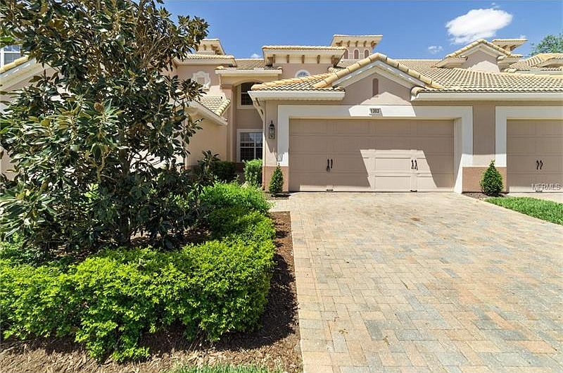 One of the larger Town Home units in the gated community of Bella Trae. A Sophia model 3 bedroom / 2 1/2 bath town home, with a beautiful, serene water view off the Lanai. Large living area downstairs with laundry room, large kitchen and full 2 car garage. Fully screened lanai has one of the nicest views in the community. Very close to the 12,000 sq/ft clubhouse with state-of-the-art fitness center, library-media room, walk in year round heated pool and spa. A full time Activities Director provides you with true resort like living in this private oasis. Manned guard gate, and lovely well kept grounds make this a wonderful home to rent, or live year round.