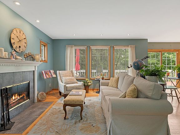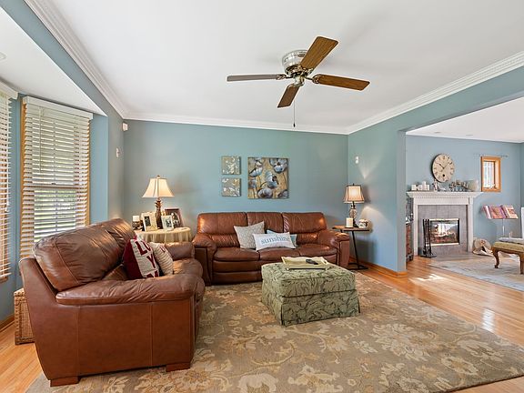 Charming home features 4 bedrooms and 2 1/2 baths on a quiet 3/4 acre lot with a pond and river rights.. Custom maple kitchen cabinets, stainless steel appliances, and butlers pantry opens to the bright family room with a cozy fireplace.. Hardwood floors throughout the main level. Separate dining room with cove molding. First floor laundry. Full unfinished basement. A quiet area to enjoy all the wild life. Agent related to seller.