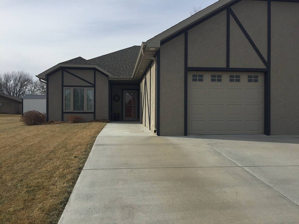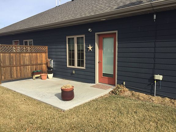 This beautiful, newer, ranch style townhome with attached one car garage is situated on a quiet cul-de-sac in a good location. The home consists of an entryway, living room/dining room, kitchen, pantry, master bedroom with master bath, hall bedroom, hall bath and laundry room and two mechanical rooms. The kitchen has custom dark oak cabinetry, laminate floor and includes all appliances. The living room has an attractive natural gas brick fireplace with a mantel. The master bedroom has a master bath with a walk in shower and a walk in closet. The hall bath has a combination tub/shower. The French patio door opens out to a concrete patio and nicely landscaped back yard. The two storage/mechanical rooms contain a high efficiency natural gas furnace with humidifier, electric hot water heater and a water softener. The single car oversized garage has room for lots of storage. The large yard is very well landscaped and watered with underground sprinklers.