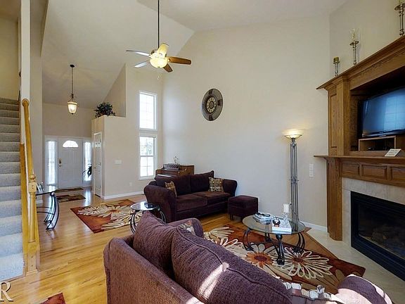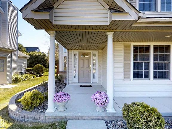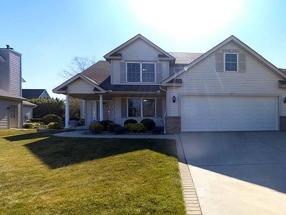 An amazing 1.5 story home with a 1st floor master with a 6' whirlpool tub, 5' shower & walk-in closet. This open floor plan has cathedral & vaulted ceilings plus lots of clerestory windows to make it very bright! Kitchen features granite counter top, stainless steel appliances, tile backsplash, upgraded faucet & pull out shelves. A unique GRANITE kitchen table remains! Roof 1 yr. old, brand new double garage door. All bathrooms have granite tops. Full front porch with pillars gives this house fabulous curb appeal with curved landscaping. Almost 4,000 total sq. ft.! 3- car garage has non-slip epoxy floors! Shelving & frig remain in the garage and shelving in the basement remain. A fabulous house that's been meticulously cared for & is in pristine condition!