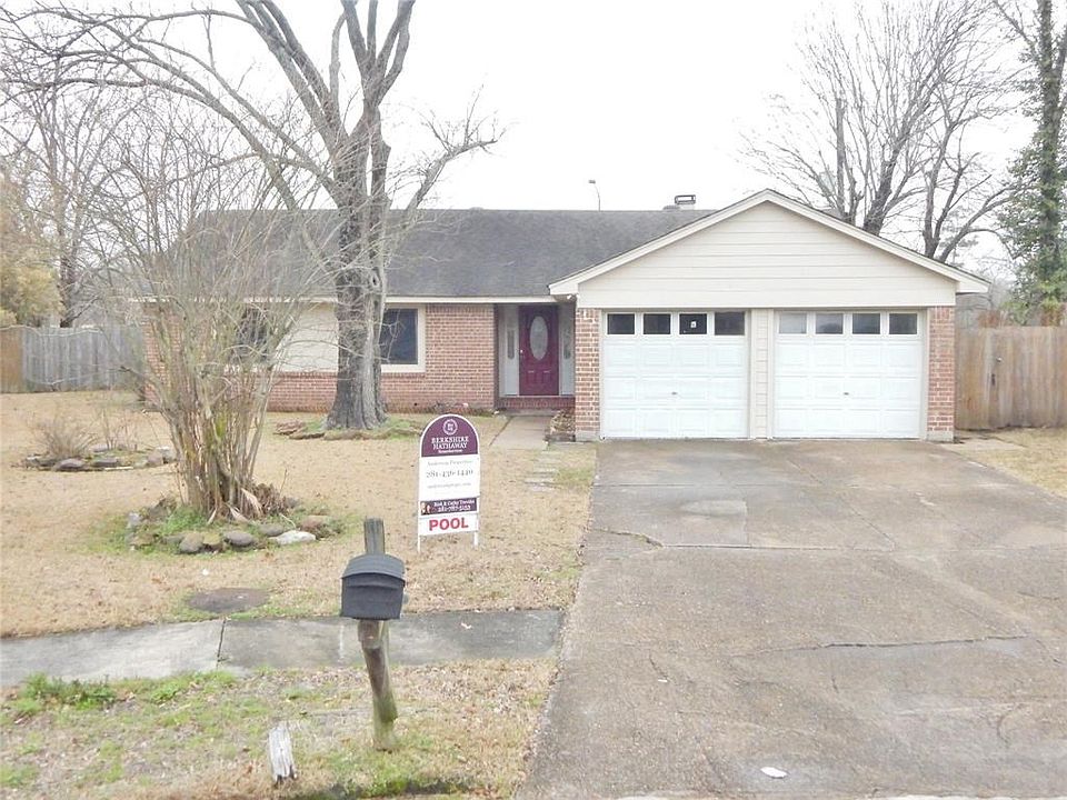 Thank you so much for viewing. Home did not flood! Home features 4 bedroom home, 2 full bath, and 2 car garage. Master suite has beautiful updated bath and his and her closets. Guest bath has been remodeled as well. Stone wood burning fireplace and new carpet throughout the home. Home also features in-ground pool, huge covered patio and large lot with no back neighbors.