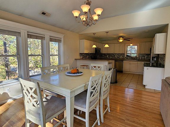 Enjoy OBX life to the fullest in this spacious home with so many thoughtful details!  The impressive mid level entry opens to a grand foyer featuring dramatic crown moulding, bold colors, and lustrous hard wood floors.  Step up the split stairwell to the upper level of the home.  Cathedral ceilings and ample windows create a bright airy space in the open living area that accesses a sunny deck running the length of the home.  The showpiece kitchen will be the chef's delight!  It features stunning backsplash accents, ample counter space including an eat-at dining area, and custom cabinetry.  Keep wine chilled in the cooler, and staples are in easy reach in the walk-in pantry.  The large dining space provides room for all at the table, and the powder room completes the shared living area.  The primary suite is to the left of the stairway, featuring expansive sleeping quarters and an impressive attached bath with jet tub, walk-in shower and dual sink vanity.  Step back down to the mid level foyer and turn left to enter a second bedroom with private bath.  The ship lap accent wall creates a beachy vibe, and the slider opens to the spacious covered decking.  Across the hall are two more bedrooms that share a full hall bath.  Relax on the delightful swing on the covered deck.  At ground level, the multi purpose room can be adapted to any use.  It features cool ceramic tile flooring and a sizable storage closet.  French doors open to an office area that access another full bath with step in shower.  Step outside to the ample fenced area perfect for pets, and kids will relish the playhouse with slide.  The storage shed provides space for tools and lawn gear.  The spacious stone patio features a sitting area and dramatic pergola.  A separate entrance by the patio leads to the attached 2 car garage lined with shelving and counters for tools and hobbies.  The interior door provides dry entry to the ground level of the home.  Centrally located near beach, shopping and schools, this tree-lined neighborhood is the perfect space to stake your claim.