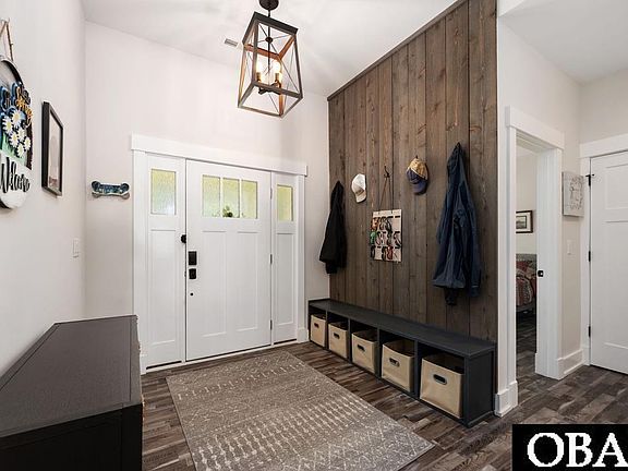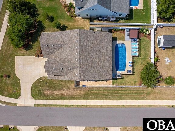 There's so much to appreciate about this Outer Banks home! Newer construction, heated pool, garage, fenced-in yard, screened porch, double-sided fireplace, fantastic location, and so much more! The covered front entrance welcomes you into the open and functional entryway, where you can store your sandals and hang your beach towels. And the bonus - no steps to enter the home! In fact, the layout of this floor is perfectly suited for single level living. Walking from the entryway towards the main living space, your eye is drawn to the kitchen with its 13' ceiling, accent windows, granite countertops, subway tile backsplash, stainless steel appliances, (including gas range with vent hood), large island and pantry. Your dinner party will flow seamlessly from the kitchen to the screened-in porch (w/double sided fireplace) and then out to the pool! Back inside, the kitchen opens to the living and dining space, where the natural light from the ample windows and the pool views flow into the main space. The tall ceilings (10' in living and 13' in dining) and the other side of the double-sided fireplace add to the openness and charm. Off of the main space is the large primary bedroom. It features an en suite bathroom with double sinks, walk-in tile shower with bench seating, and walk-in closet with custom organization. Walking back toward the main entry, you'll find a hallway that leads to two additional bedrooms, a hall bathroom, and an absolutely adorable laundry room that the owners reworked from the original plans to make it more functional. The 2-car garage (w/ EV charger) rounds out the offering on this level. Upstairs, you'll find a spacious bedroom with it's own bathroom and a sound view from the window. It's a great space to welcome an in-law or guest. Outside, the back-and-side yard is fully fenced, the pool is heated with an in-ground propane tank, and the hot tub awaits! Plenty of space and sun for lounge chairs, and a dedicated space for the grill! The home is located in the Water Oak community, that boasts a community soundfront pier with gazebo, kayak launch and places to store your water toys. In the evening, the pier is a great place to view a sunset over the water. There is also the KDH town-maintained multi-use path that goes for miles, with much of it along the soundfront. The location is also easily walkable or bikable to the First Flight schools. To enjoy the other body of water we're famous for, the Atlantic Ocean, just bike or drive down First street, it leads to a beach access with parking, and a stop-light controlled crosswalk. Last but not least, the home is located in the X-flood zone, so flood insurance is not required. This home would make a great primary residence or 2nd home. It's centrally located to restaurants, shops, grocery stores, the schools and the beach, but it's also tucked away almost to the end of the street in a quiet neighborhood.