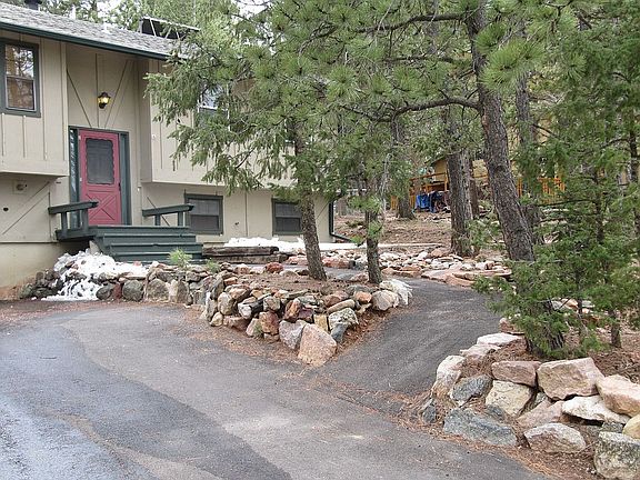Woodland Park home in town. Heavily wooded property with fully fenced back yard. Newly remodeled kitchen. Sun room that attaches to one of 2 decks. Fireplace and wood burning stove. City utilities
