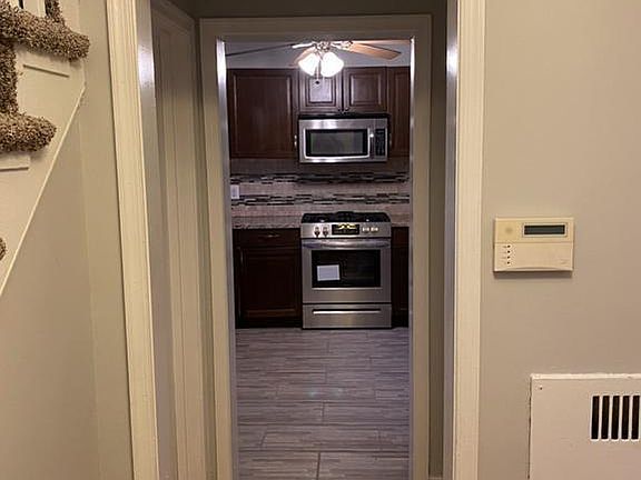 Charming single family home was completely renovated in 2011 and updated in 2020. As you enter this beautiful 3 bedroom home enjoy a lovely foyer, fresh paint, hardwood floors, crown molding, a main level half bath and a large bay window in the living room. Kitchen boasts granite counter tops, updated stainless steel appliances and a bar counter opening to the dining room; perfect for bar stools. Lower level is fully finished with its own half bath. Updated carpet, light fixtures and ceiling fans throughout. Generous front and back yard with both a storage shed and a detached garage with single door access.