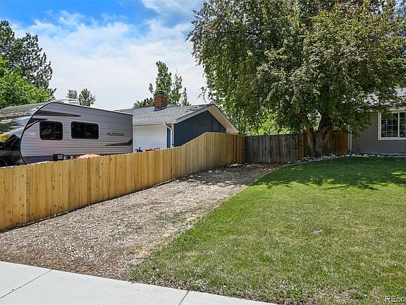 Step outside to a large wraparound stamped concrete patio ideal for outdoor entertaining. The property also includes a separate driveway that runs the full length behind the fence line, providing secure parking for RVs, work trucks, or recreational toys. A full sprinkler system keeps the yard green front and back, and with no HOA or Metro District fees, ownership is straightforward and affordable.