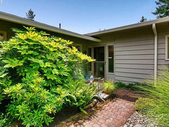 Simple elegant 1956 mid-century one-level near beautiful Glendoveer. Vaulted ceilings, updated kitchen and baths, hardwood floors, fireplace. This gem sits in one of the most beautiful landscaped outdoor spaces you'll see. Quiet, serene, private. Raised beds. Dog run area on west side. Spacious deck for entertaining friends and family. Large garage with abundant storage. Nearly new roof, gutters, and gas furnace.