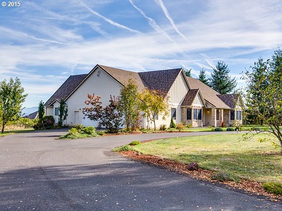 Built with Style & thought, this magnificent home with double gated expansive driveway, situated on a picturesque 1.09 acre lot with spectacular view of Mt. Hood, boasts spacious peaceful living, vaulted ceilings, Oak floors and doors, 4 Bedrooms, each with their own full Bath, Large formal dining room & open kitchen. Large center office/den. Attached 3 Car garage and large detached shop offer tons of storage for cars, tools and toys!