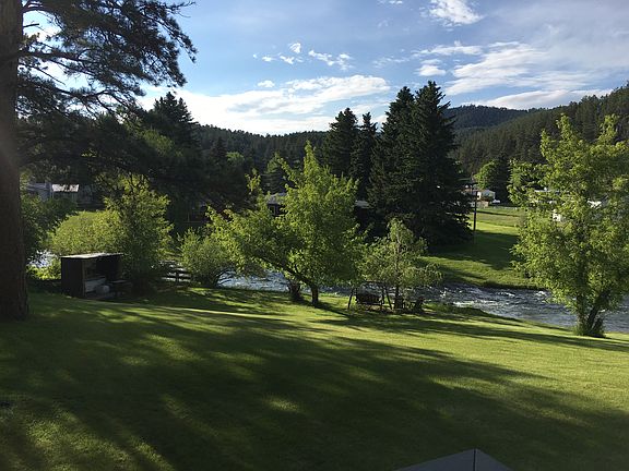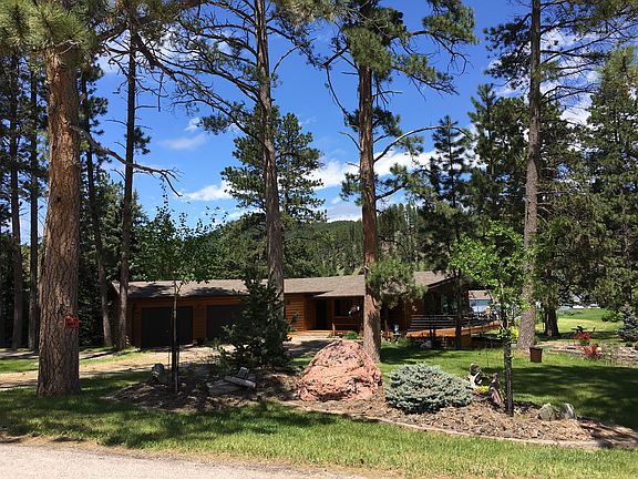 Back on the market with a significant price reduction! This home is truly a rare find! Beautiful log sided ranch style home that sits on 1.93 tree lined acres bordered by 285 feet of creek frontage. Enjoy the view from a 3-sided deck surrounded with stunning views of Rapid Creek and the majestic Mt. Thrall, ll located just 10 miles west of Rapid City. The home was built in 1965 with new updates. The main floor has an open kitchen, dining and living room with slate fireplace, one full bath and two bedrooms. The lower level has a den, one bedroom with bath, another bedroom with a non-conforming window, and an unfinished bath in the laundry room. The lower level can be accessed from the exterior driveway providing a secluded area for a wood fire pit on cool evenings. The home is 1.0 story on a full basement. The oversize 3 car garage has plenty of room to store your recreational toys and vehicles including a large south facing driveway.