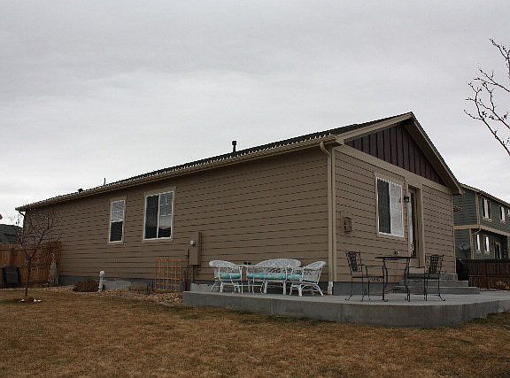 Wonderful 3 bdrm, 2 bath Ranch Style home w/open floor plan boasts vaulted ceilings in living room and master w/9 foot ceiling in the rest of home. Main area is wired for surround sound. Kitchen has espresso finished cabinets, granite counter tops and stainless steel appliances. 3 oak hardwood floors flow throughout front entry, dining area, living room and kitchen. Master has 5 piece bath with soaking tub and walk in closet. Unfinished basement has roughed in plumbing for bathroom. Extremely energy efficient with 50 gallon hot water heater and 93% efficient furnace. HUGE lot with extra space between neighbors backs to open space and walking trail. Yard is fully fenced with sprinkler system, landscaped with large flowering trees and young fruit trees. Owner is a Colo. licensed Realtor.