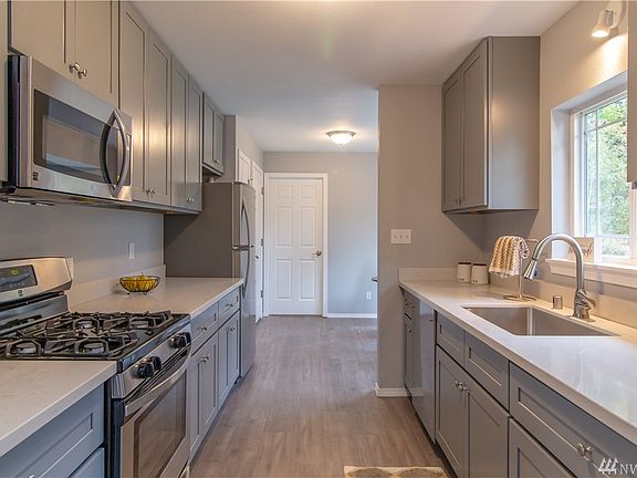 Beautifully updated rambler, almost like buying a brand new home! Kitchen has been completely updated, everything is new from cabinets, sink to quartz counter tops & SS appliances. Even new baths & vanities w/quartz! New roof, furnace, flooring, lighting, fresh paint inside & out! All w/modern color schemes. Vaulted ceilings & skylights make this home light, bright & spacious. RV parking/septic too, bring an offer!