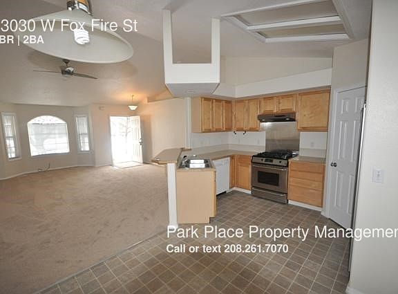 SCHEDULE A SHOWING ONLINE AT: showmojo.com/lh/75e4abf0c1 This amazing 3 bedroom, 2 bathroom home is situated within a quiet subdivision, but it's located off of Eagle & Ustick, meaning it's close to shopping, dining, and entertainment. The home features brand new carpet, vaulted ceilings, and the ideal floorplan for a busy family. The kitchen and living room are open to each other and offer lovely plant shelves for your decor! The kitchen has a breakfast bar, corner pantry, gas range, and dishwasher. *Fridge included, but to be used at renter's discretion. Property owner not liable for repairs.* The master suite is open and features large windows, a HUGE walk-in closet and a private bathroom with dual-sink vanities. Next to the master suite is the bonus room. The additional bedrooms are large and offer ample closet space. This home has a large backyard w/ a patio that is perfect for summer gatherings! Access to the backyard is directly off of the dining area. For questions, please call (208)377-3227. *This information is deemed reliable but not guaranteed. Renter is to verify all information (photos similar). Security Deposit: 1300 Parking: 2 Car Garage Lease Length: 12 month Subdivision: Heather Meadow Nearest Cross Street: Ustick & Eagle Square Footage: 1437 Date Property Available for Viewing: 2017/1/24 House Number: 13030 Bathroom: 2 Bedrooms: 3 Pets: Service or companion animals only Utilities Included: none Price Specials: Reduced Rent Balcony Deck Or Patio Boise Dual Sink Vanity Filter Easy Program High Vaulted Ceiling Laundry Area Inside Plant Shelves Washer/Dryer Not Included