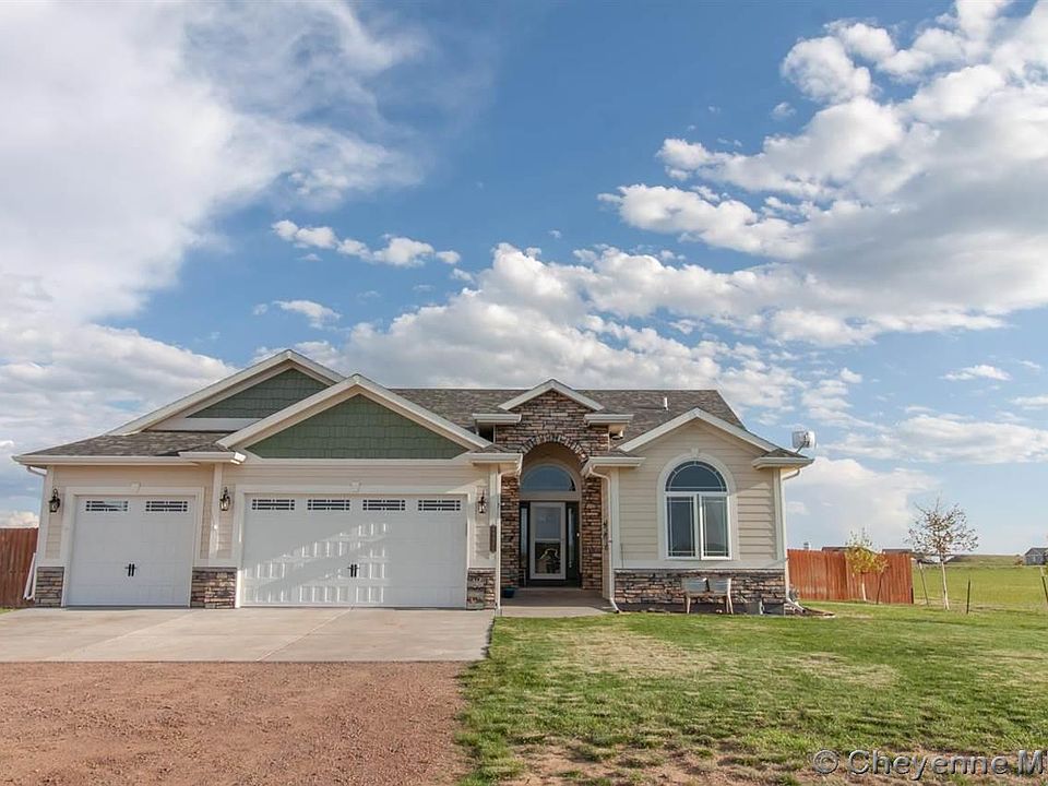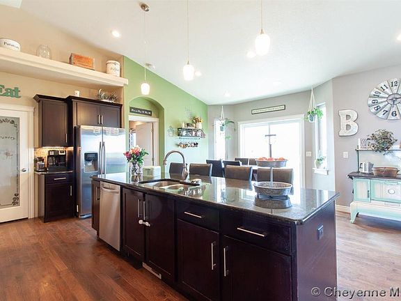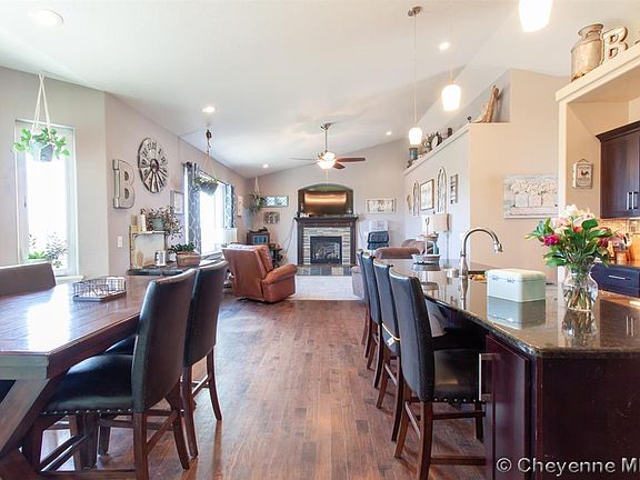Stunning property by one of Cheyenne's favorite home builders. This home is loaded with custom finishes throughout: hickory hardwood floors, stainless appliances, granite counters, tiled baths, Schroll cabinets, ceiling fans throughout, AC, custom gas fireplace and more. Basement almost fully finished except for a framed possible 5th bedroom. Or use for additional storage. Landscaped yard, sprinklers front and back and fenced back yard. Must see this beautiful slice of the prairie.
