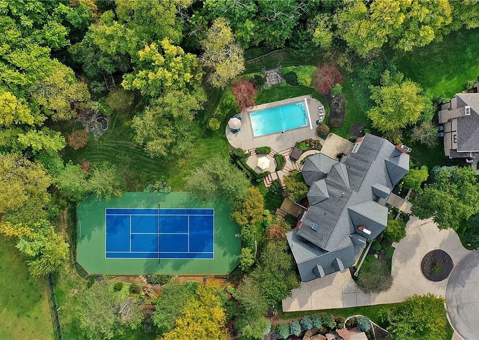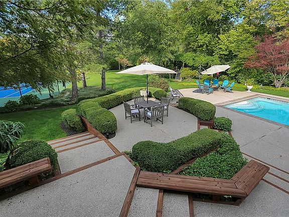This home is simply stunning inside/out. A premium lot of a sweeping 1.2 acres offers relaxing retreat and privacy, overlooking beautiful vistas including gardens w Coy Pond, Gazebo + creek. Featuring an in-ground pool, tennis court, hot tub & incredible landscaping. Guests are greeted w a beautiful open floor plan leading to every amenity imaginable: A dream kitchen W upscale appliances, a marble island, an amazing Sunroom + huge laundry room. Large FR and LR are w gas fireplaces. The upper level offers 4-5 large BRs, a huge owner's suite w enormous WIC, and an exercise room/5th BR. Designed to help you entertain in style: impressive walkout LL & fully equipped wet bar, guest BR, office, wine cellar, oversized rec rm, media rm & more.
