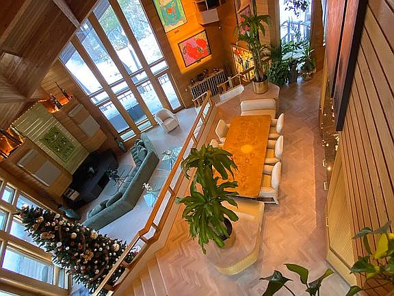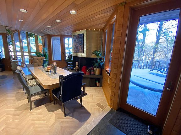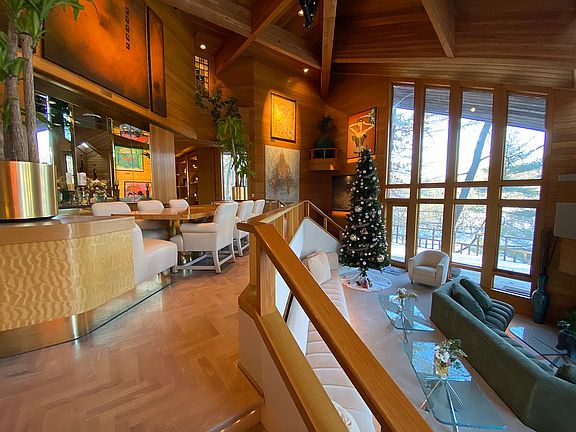 The former Ted Townsend mansion. Set on a wooded 6.4 acre lot with a private pond & dock, the house has 9,862 sq. ft. finished over 6 levels. This is the ultimate home for entrainment catering kitchen, formal dining room overlooking the vaulted great room, dining for 24, floor to ceiling windows views of the trees & water. The top level has a master BR draw bridge & a lookout tower above the tree tops for star gazing & there are his & her closets + the master bath has a custom tub water fall, walk-in shower, 2 solid wood vanities & a sauna with a tree level window. It has 3 more BR suites, each their own bathroom & private outdoor deck. The lower level has a dance floor, theater area & a professional bar glass fish aquarium. A 2,957 sq. ft. deck surrounds the house & an aggregate circle driveway leads to 6 car garage. Built by Neumann Brothers to last for 100's of years. Replacement cost of over $12M. This home has recently been renovated with new flooring, lighting, wifi/access points, sound systems, garage floor epoxy, and landscaping by the new owner, Jamie Cord. There has been over $600,000 invested into updating the property since early 2019.
