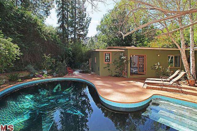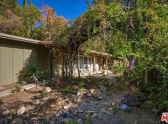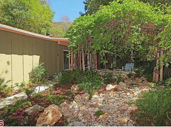 Relax and rejuvenate in this rustic 4bed/2bath ranch-style pool home, the lowest price available in tranquil Mandeville Canyon! Open living area offers vaulted exposed beam ceilings and striking floor-to-ceiling stone fireplace. Roomy, vintage kitchen even boasts indoor BBQ grill. Dining area opens to wood deck. Spacious cabin-like den features loft, wall-to-wall bookcases and tons of storage. 4 good-sized bedrooms overlook secluded walkways, gardens and lush landscaping. Fantastic indoor outdoor flow with skylights, abundant windows and French doors filtering terrific natural light. Warm hardwood floors throughout, central heat/AC, copper plumbing. Enjoy your solar-heated black bottom pool with new hardscaped patio and gas fire pit. Nestled on a 17,726 square foot lot surrounded by flourishing greenery and canyon serenity, close to hiking trails. In sought-after Brentwood, up the hill from trendy dining and shopping options in Brentwood Village, Pacific Palisades and Santa Monica.