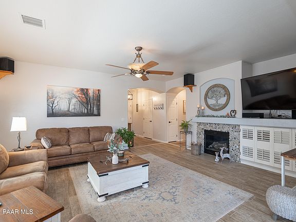 Beautiful, well maintained Quailwopd home that offers 4 bedrooms all with main level living. The current owner took tremendous pride in their home and added front landscaping, wood-look tile flooring, pebble stone tile detail around the fireplace and updated light fixtures. Enter into a foyer with guest bedroom and bathroom. The family room flows into the eating area and kitchen for optimal entertaining. This home offers a master suite with ensuite bath, walk-in shower, soaking tub and double sinks. There is a JR master suite with ensuite bath as well. The home is rounded off with two additional guest bedrooms, a covered and open air paver patio, privacy wall fencing and landscaped backyard.
