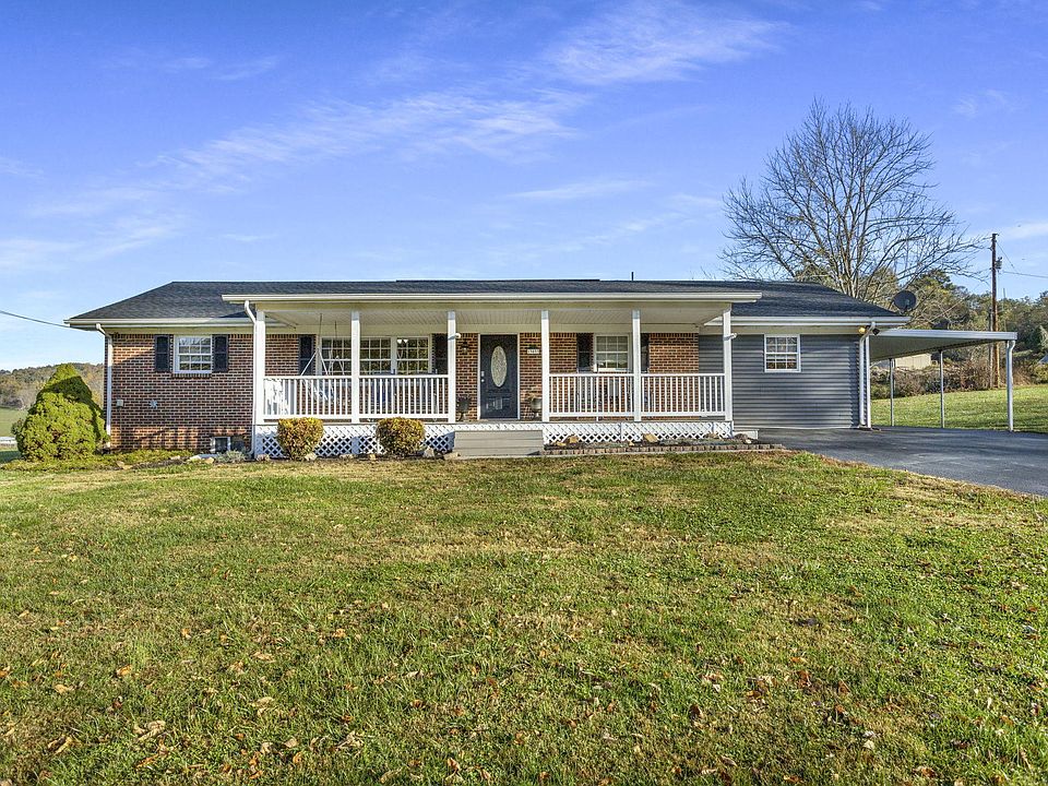 Such an amazing opportunity to own a remodeled home with acreage and single level living. The home is being sold with approximately 4.173 acres. (Could also be purchased with 8.553 acres if you choose.) The kitchen has been beautifully remodeled and includes amazing butcher block countertops, new cabinetry, a large island, farmhouse sink, new appliances and beautiful subway tile. The hardwood floors have been refinished. Entering from the carport, you'll find a mudroom and laundry room. Off the kitchen, you'll enjoy the sunroom which then leads onto the back patio and pool area. The in-ground pool is 18x36 and the liner has been replaced within the last year. As you sit by the pool, you can enjoy the view of the beautiful rolling mountains in the distance. Much of the land is fenced and ready for livestock if you so choose. This basement also offers a basement that would make a great space for a den/game room, etc and features a room that could serve as an office or 4th bedroom and has an attached full bathroom. With all the updates, acreage, swimming pool and being move-in ready, this home is a must see!