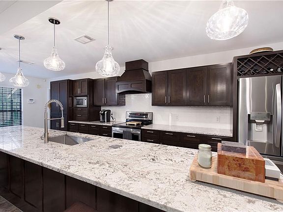This Unique Beauty sits in the middle of 2.480 flat Acres just past Big Creek Lake. You will enter the property driving down a Beautiful palm tree lined driveway. The front entrance of home has a beautiful newly tiled sitting area that flows perfectly into the home. This Home was built for entertaining, this is truly an open floorplan with the open kitchen that has new granite and backsplash as well as new updated lighting over the beautiful 14ft bar. The living room and kitchen have a clear view of the only one year old Gunite heated pool and hot tub. The Master suite has a Separate shower and tub with a huge walk in closet. The fourth bedroom has its own half bath that could easily be an office or a mother in law suite with its own entrance. The half bath is perfectly designed for quick access from the pool area. There is so much room in the back yard, a small shooting range is on the very back of property. The oversized garage has a storage area that is heated and cooled (not included in sq ft.) If privacy and entertaining are on your list, this one is what you have been looking for.