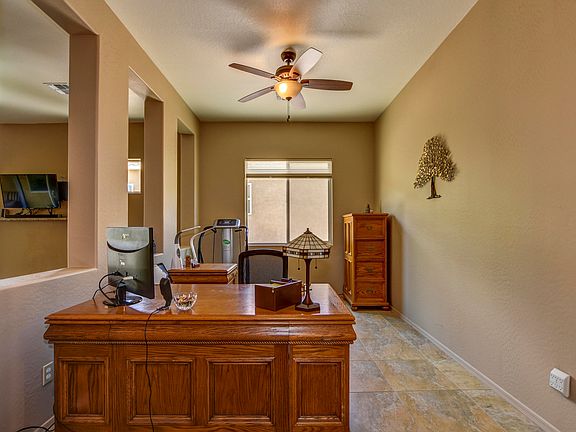 Stunning 2013 built home with 2 bedrooms, a den and 2 baths. The plan features an extended garage that is extra deep and extra wide (shop area). The home has 20'tile flooring throughout. The home features an open floor plan with upgraded granite countertops, stainless steel appliances and roll out shelves. There is also a wonderful smart space ideal for the home office person that offers many custom built in cabinets. The bedrooms are completely split. The formal dining room offers a large upgraded picture window which takes advantage of great views of the back yard. The back yard features an oversized covered patio along with a raised patio area. There are raised planting beds in the back yard that the owners brought in dirt ideal for planting.