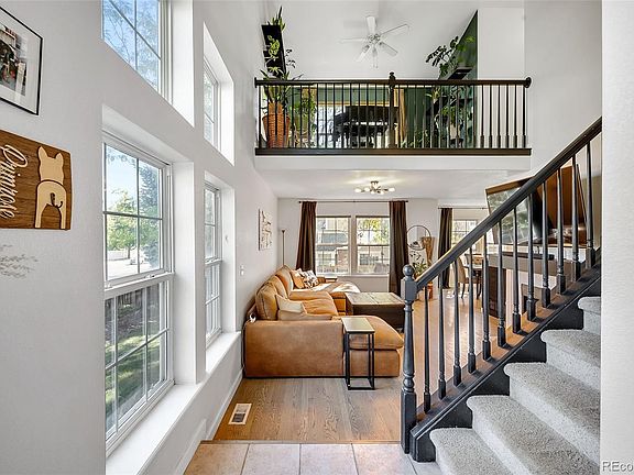 Welcome to this well maintained, move in ready gem in the highly desirable Harvard Commons neighborhood! Step inside and be greeted by beautiful light floors and an abundance of natural light. The spacious living room boasts vaulted ceilings, large windows, and a cozy fireplace, offering the perfect spot to relax or entertain. The bright, open kitchen, complete with an eat-in breakfast nook, is ideal for everyday meals or hosting gatherings. A convenient half bathroom completes the main level. Upstairs, you’ll find a generous bedroom, a full bathroom, and a versatile loft space, which could serve as a third upstairs bedroom or flex space. The primary suite is a great retreat with an en suite bathroom and walk in closet. Upstairs also includes a thoughtfully placed laundry room, complete with a washer and dryer (included). The fully finished basement expands the living space with a large bedroom, a second living room, and a spacious bathroom featuring a massive walk-in closet. The oversized two-car garage adds further convenience. Enjoy low maintenance living as the HOA takes care of the exterior, while you enjoy your own private, fully fenced patio just off the kitchen and dining area. It offers the perfect space for outdoor dining, barbecues, and a pet-friendly retreat. Situated in an unbeatable location, this home offers the best of Colorado living. You’re just steps away from parks, trails, and a quick trip to grocery stores, restaurants, shopping, and entertainment. With easy access to I-25, The Orchard, Denver Premium Outlets, and the Amazon Distribution Center, commuting and weekend plans are a breeze.